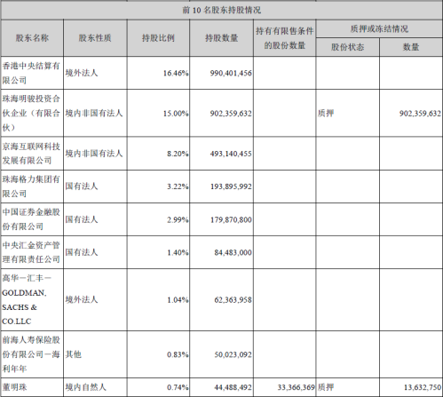 转让之后,根据2020年一季度财报显示,格力集团持股为3.22%,位列第四大股东。同时,由于还处于锁定期,受让方珠海明骏投资合伙企业(珠海明骏)持股数位9.02亿股,持股比例为15%,是格力第二大股东、第一大境内股东。
