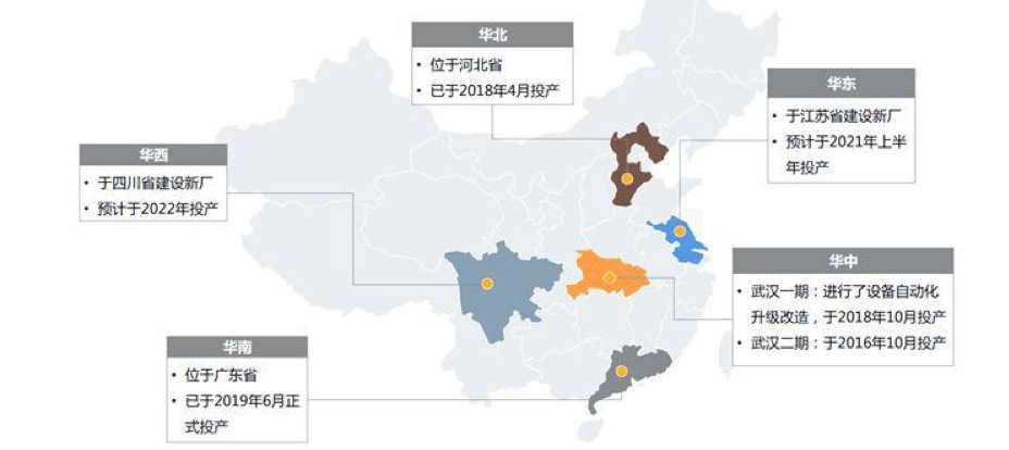 19年4月,周黑鸭上线锁鲜新包装,相较于旧包装,新包装分量更小,似乎意在满足客户少量多种的购物需求,以突破消费者消费数量的限制,提升产品竞争力。但是相较于线上,线下门店的价格明显较高,并且公司本身在线上营销的投入更多,因此大多消费者更愿意在网上进行消费购物,线下门店的进店消费人数在逐年减少。高昂的房租、人工、运输成本投入,如果不能转化为顾客的进店消费率,就算线上的流量再大,消费再高,对于公司本身来说也是一种消耗和浪费。而自19年起公司放开特许经营权后,截至 2020年10月,公司的加盟店已经达到了500家以上,主要加盟形式包括:特许加盟式、单店托管式和员工内创式三种形式。不难看出,周黑鸭此次自降身价,意在通过转型加盟模式,突破管理半径,减缓直营店经营成本上升带来的压力,提升业绩。但根据2020年年报来看,结果却不理想。数据显示,2020年周黑鸭自营门店营收14亿元,而加盟门店营收仅有1.4亿元,占总营收的不到十分之一。造成加盟店营收不及预期的原因其实很简单,对比其他两家来看,周黑鸭的加盟开放来的太晚了一些,在黄金地段和消费市场大都被绝味、煌上煌瓜分殆尽之时,周黑鸭才开始门店扩张,自然是竞争不过。其次,由于周黑鸭采取的是中央供货,分销全国的供应方式,因此供应链的建设对于销路的开拓就十分关键。但从周黑鸭的供应体系来看,目前在全国仅有湖北武汉、河北沧州、广东东莞、江苏南通四大产能基地,四川成都的基地还在投产当中。再看绝味食品,在全国已经拥有20多个生产基地,就算是煌上煌也拥有六大生产基地。图:周黑鸭五大生产布局(来源:公司公告,新眸整理)