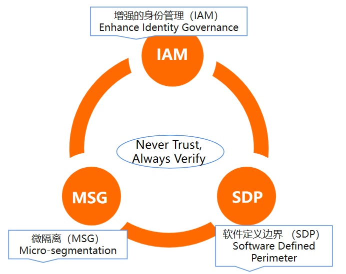 看到这里,你或许对零信任还是一头雾水,接下来我们通过具体案例来解读。就目前来看,业内普遍认为软件定义边界(SDP)、身份识别与访问管理(IAM)、微隔离(MSG)是实现零信任的三大技术路径,虽然名称绕口,但是本质并不难理解。
