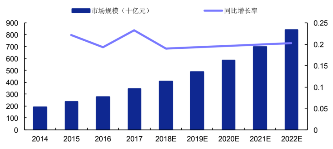 图:我国人力资源服务市场规模增长情况(来源:灼识咨询,安信证券研究中心)