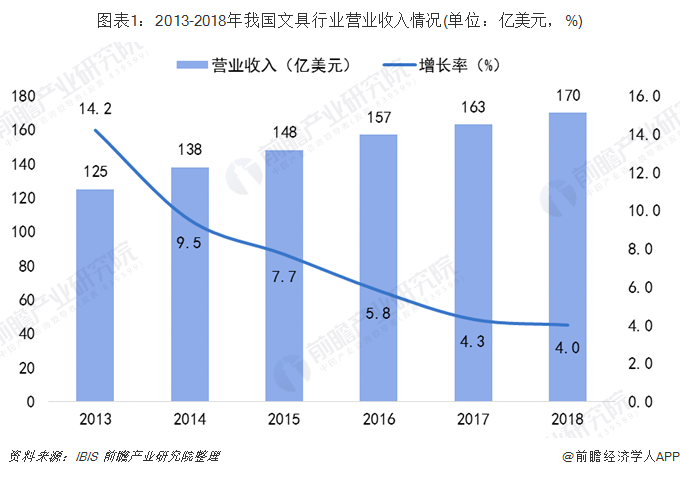 彼时制造业浪潮衰退,诸多中小文具店企业纷纷破产。在此之前,晨光创始人陈湖雄已经做了近八年的文具代理商,一路走到总销代位置,但金融危机让陈湖雄的供货商相继倒闭,无奈之下,陈湖雄和哥哥陈湖文、姐姐陈雪玲于1999年决定共同创业,在上海奉贤买地建制笔厂,这也是晨光文具的雏形。陈湖雄赶上了好时代,在当时,学生们对文具支出的比例一直在不断增加,早期的文具企业在义务教育的普及下吃到了第一波红利。随着时间推进,陈湖雄意识到,当时中国制造业主打实用为主,不像日韩国文具产品侧重设计新颖、外观炫酷,在功能主义的驱动下,国内文具厂的设计清一色单调又老旧。受韩流趋势启发,成立之初的晨光全名为“中韩晨光文具”,看似中外合资企业,却是一家地地道道的中国公司,在陈湖雄看来,想要得到学生群体的青睐,不仅产品设计颜值要高,还要将售货渠道铺设到购买人群周边。当时,晨光的销售模式为“层层投入,层层分享”,公司总部负责一级经销商,一级经销商负责二级城市的经销,以此类推到城镇乡村市场的经销。在这个销售体系下,晨光的售货渠道得以迅速铺开,仅用几年时间,无论是在一线城市、还是乡村县城的校边商圈,都能看到晨光的红白黑三色标识。后来,为了进一步扩大品牌影响力,晨光文具还现金补贴门店装修,免费印发晨光文具商标标识,并给文具小店更换牌匾,对店面进行迅速升级。与此同时,晨光率先启动连锁加盟,在全国范围内的合作文具店中筛选出优秀店面进行包装迭代,时至今日,市面上存在的晨光销售终端大致可以分为三种:标准样板店、高级样板店、加盟店。从某种程度上来说,晨光就是依靠这种轻资产的发展模式,成功打入到学生群体中去,2019年末,晨光的销售终端达到历史新高8.5万家,在全国校边商圈覆盖率已达80%,平均下来,学校周边每10家文具店,就有4家是晨光文具经销商。从外部宏观市场上看,近年来文具行业规模虽然持续增长,但增速由2013年之前的两位数增长降为个位数增长。根据IBIS数据,从2013年至2019年,文具行业规模从125亿美元增长至182亿美元,年均复合增长率达7.8%,同比增速由2013年的14.2%降至7.1%。大环境的不景气,让晨光文具也未能独善其身,即便营收逐年递增,但其增速也在放缓。图:2013-2018我国文具行业营收收入情况(图:IBIS 前瞻产业研究院)