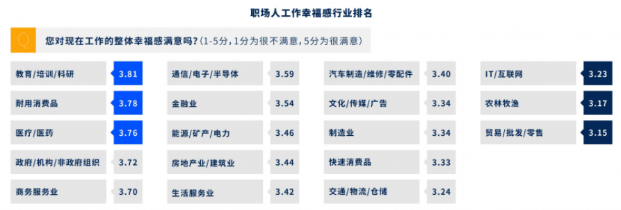 一位在字节跳动的实习生表示,公司制定的OKR,其实他入职了两个月也没搞懂。不只他,公司很大一部分员工也不清楚,但“Ctrl+c,Ctrl+v”的模式谁都会,到最后OKR实际上成了一种形式主义。互联网行业从诞生起即存在“内卷基因”,刚刚进入行业的人从开始的被动内卷,到后来习惯后的主动内卷,进而带着新人继续内卷,这已经成为常态。整体内卷的工作氛围之下,年轻人的频繁跳槽似乎也不难理解。在互联网行业做了4年市场工作的花花向新眸坦言:“从进入这行起就没有停止过焦虑,每天都是开组会、见客户、改方案,深夜接到客户或老板的电话是常有的事,身体也越来越差。”无奈之下,花花已经决定跳槽去另一家公司,相比大厂薪资虽然少了,但焦虑感也少了。互联网从没有轻松可言,根据脉脉发布的《人才吸引力报告2020》数据显示,行业幸福感排名前三的分别是教育/培训/科研,得分为3.81、3.78和3.76。而IT互联网行业幸福感得分仅为3.23,在所有行业中排名倒数第三。其中造成互联网幸福感低的原因工作压力位居首位。豆瓣小组“跳槽那些事”简介中也明确表示“发展空间的缺乏是造成职场人士焦虑并产生跳槽意向的主要原因之一”。在年轻人看来,跳槽虽然不能包治百病,但在“反复横跳”的过程中,也是在一定程度上消解年轻人的焦虑感。年轻人“跳槽”,与其说是寻找更好的出路,不如说是在寻找减缓焦虑的出路。