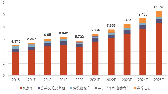 前两年下架的美团打车近日又重新上线,并通过大力度的优惠活动拉新增量;T3、曹操、高德、享道等几家平台也动作不断,高德打车在抖音、微信等社交平台大量投放广告;T3出行近日推出新的优惠券礼包;享道上线暑期专“暑”服务,充值即赠权益金,优惠券叠加享受折上折;曹操出行、如祺出行也推出邀请好友可立即提现等活动,网约车市场的硝烟渐浓。事实上,网约车市场的潜力早已被证明。根据CIC数据,2020年中国出行行业市场规模为5.7万亿元人民币,预期2025年将进一步增至10.6万亿元,期间年复合增长率CAGR为13.1%。根据CIC的预测,2025年共享出行市场规模将达到8620亿元,2020-2025年年复合增速为29.9%。言下之意,共享出行渗透率仍在持续提升。强烈的市场信号表明,谁能抓住这个空档期,谁就有机会实现逆风翻盘。经过近十年的发展,网约车行业已由最开始的饱受争议,逐渐走向成熟,各平台的发展战略亦有所调整。除了聚焦于网约车业务外,一些玩家也开始与产业链伙伴,在智能充电、维修保养、融资租赁等领域开展多线业务合作。以享道出行为例,依托上汽全产业链优势,享道出行的网约车产品在整个汽车生命周期过程中都可以提供相应的解决方案,而经历了去年的品牌升级,享道出行宣布完成“全场景智慧出行综合体”布局后,全面覆盖了网约车、企业用车、个人租车和出租车业务。从中我们不难看出,网约车市场的角逐点变了。即由传统的依靠资金、资源、流量支撑逻辑转向立足企业自身基因,在合规的大逻辑下,精准拓展多项业务体系。基于此,本文新眸将着重回答以下三个问题:· 从目前的行业竞争形势来看,网约车市场格局几何?