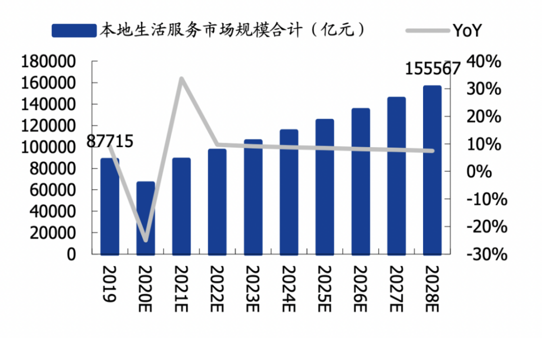 根据国盛证券最新研究,本地生活服务行业总规模未来有望以每年8%左右的增速增长,到2028年达到15.56万亿元的规模。需要注意的是,从用户的消费频次与习惯来说,新服务的演进方向必然是更快、更近、更密,在此基础上,即时性消费入口价值、线下履约能力、基于LBS的运营能力将显得格外重要,这同时也是阿里生活服务的耦合逻辑。