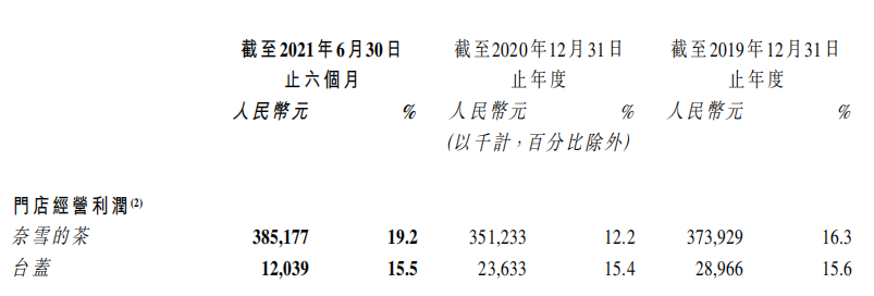 其中,门店经营表现突出。2021年上半年,奈雪的茶门店经营利润3.85亿元,已超过2020全年3.51亿元和2019全年3.74亿元,门店经营利润率达19.2%,比2020全年高了7个百分点,比2019全年高了3个百分点。