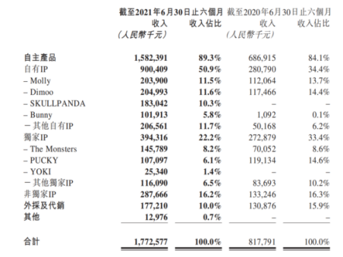 图:泡泡玛特IP收入(来源:泡泡玛特上半年报)