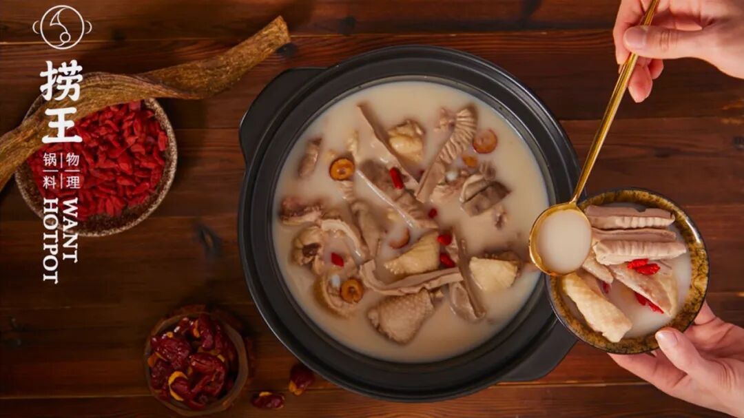 捞王主要面向的是长三角地区青年群体,“清淡养生”、“煲汤喝汤”是他们的主流诉求。捞王也抓住了消费者的小心思,在门店前厅设置摄像头,专门投射后厨慢炖煲汤的全过程,在川渝红汤火锅占主导的口味下,胡椒猪肚鸡拥有极佳的味觉辨识度,除此之外,捞王在菜品上也打造出了爆浆手打虾丸、花生冰沙、双腊煲仔饭等爆品,这些爆品上榜了网红必点清单,让它在广式养生火锅的细分赛道上多了一份筹码。