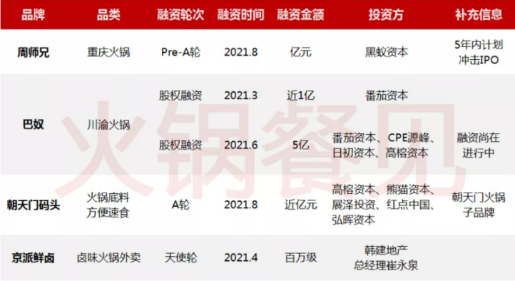 图:2021年获融资的火锅品牌(来源:火锅餐见)