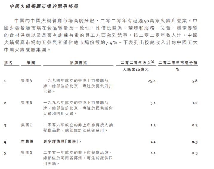 图:中国火锅餐厅市场的竞争格局(来源:捞王招股书)