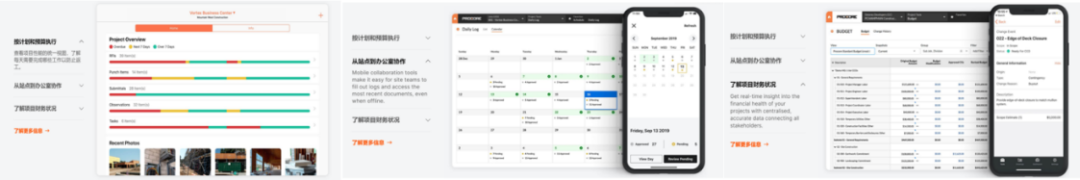 简单地说,就是在Procore中构建了一个协作环境,为每个项目团队成员提供无限的实时可访问性,从协调到完成,使项目保持最新、团队时刻关注项目的循环更新。客户在使用Procore时,可以通过实时更新和即时跟踪访问他们所需的所有信息,通过更多的团队合作,达到更少的返工,实现更好的项目交付。